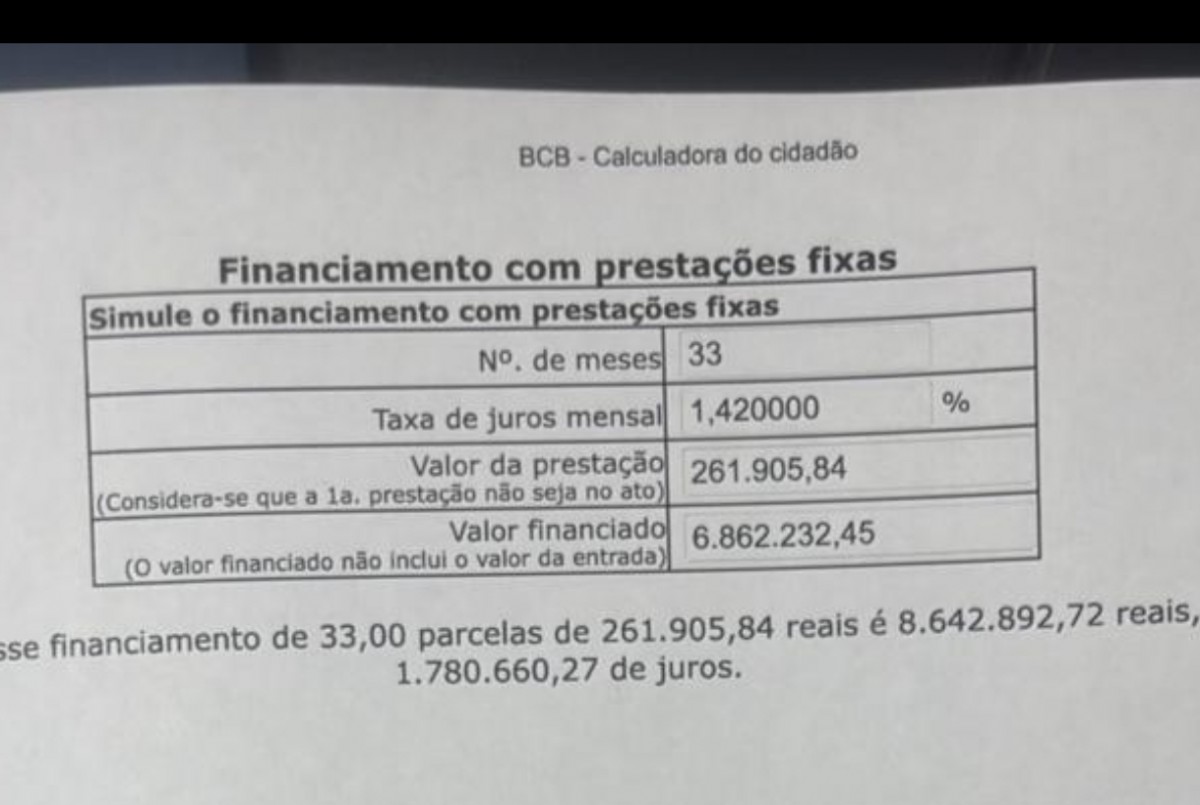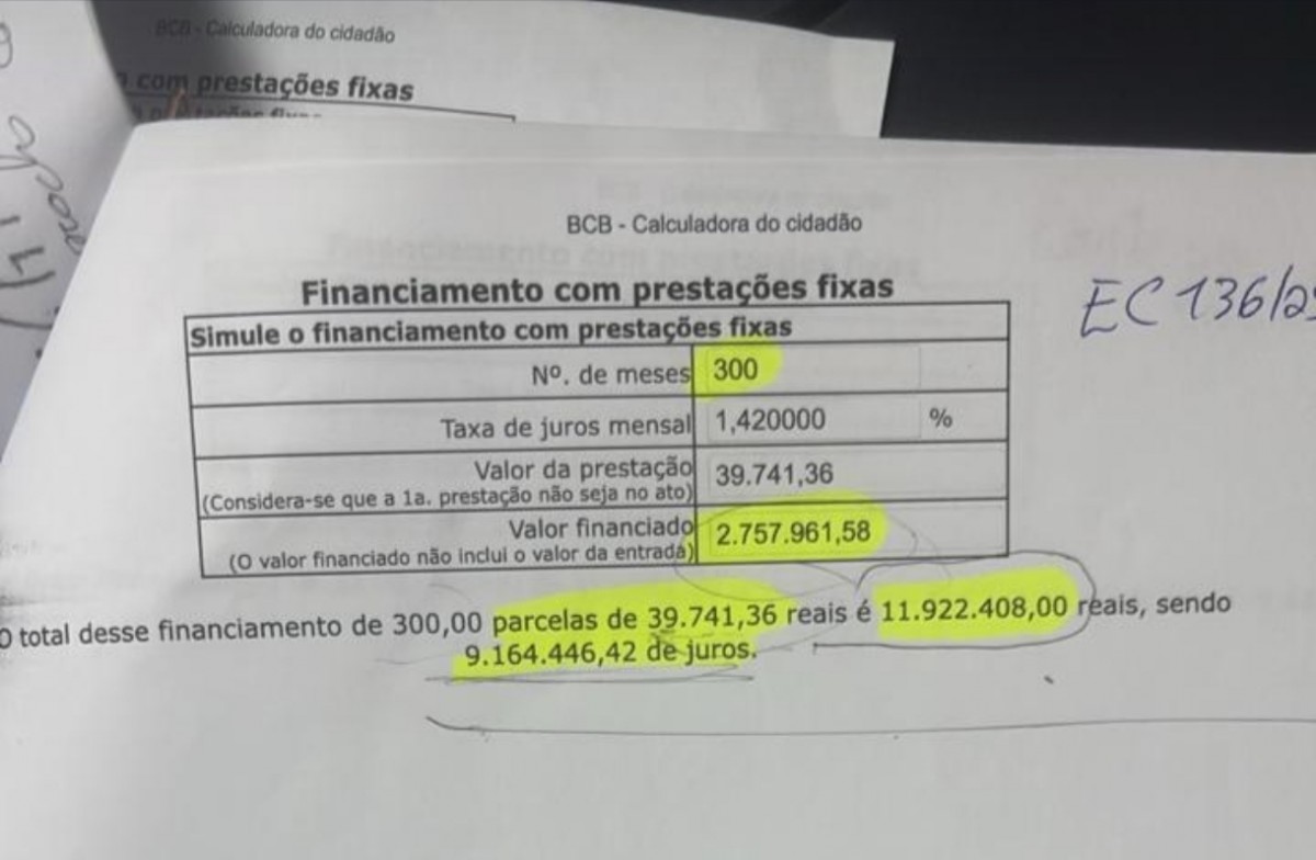Demostrativos de cálculo do valor total da dívida, valor que é permitido por lei ser parcelado, valor das parcelas e juros.